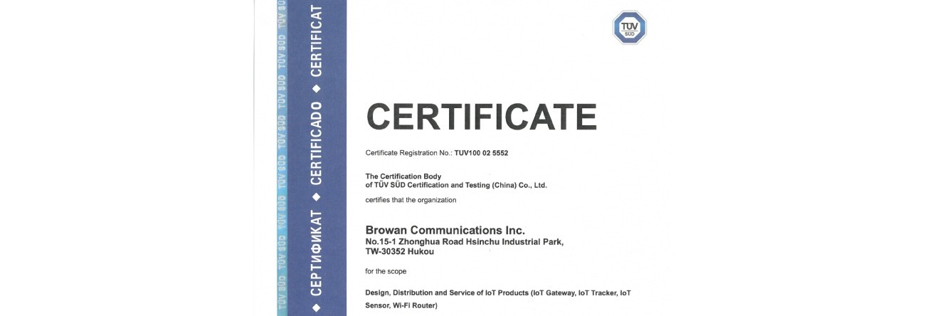 The certification, issued by TÜV, is an internationally recognized standard for quality management systems (QMS), ensuring that organizations consistently meet customer and regulatory requirements while continuously improving internal processes. This certification reflects Browan’s dedication to delivering reliable, scalable, and high-quality IoT solutions across industrial, commercial, and smart infrastructure applications.
